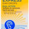 Cl-ear Express Ear Drops are a dual action ear drop which both soften and remove hard wax. These ear drops contain Glycerol to gently soften the wax and Urea Hydrogen Peroxide which releases oxygen to break up earwax, making it easier to remove.