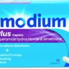 Imodium Plus Caplets are used to treat a short-lived attack of diarrhoea when it occurs with stomach cramps, bloating and wind.